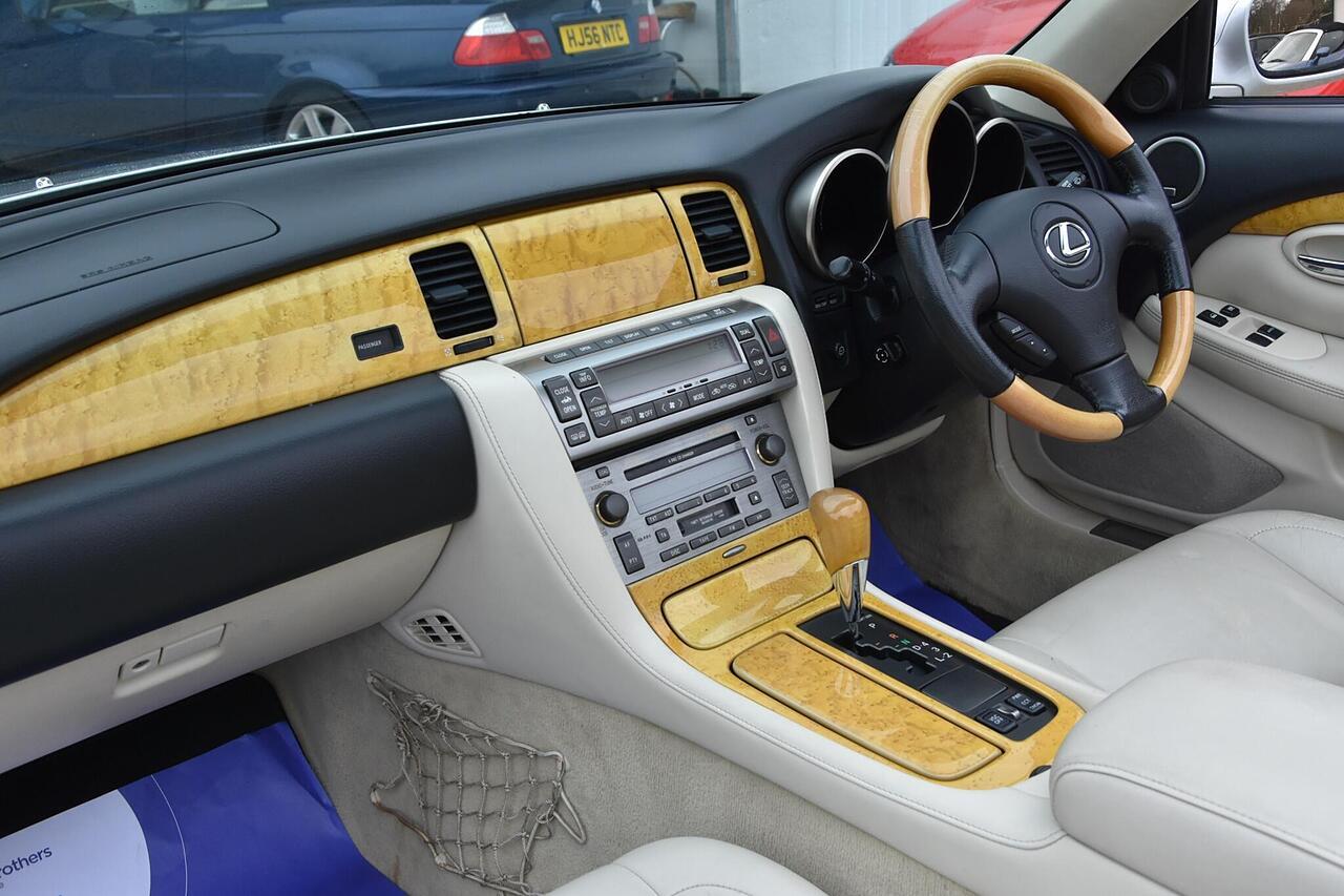 Inside, the cabin offers high-quality materials, supportive leather seats, and a driver-focused layout designed for comfort and convenience. Equipment includes climate control, premium audio, electric memory seats, and advanced safety features, creating a luxurious and relaxing driving environment. The SC 430 is renowned for its build quality, reliability, and smooth ride, making it a superb choice for anyone seeking a dependable yet exciting luxury convertible.